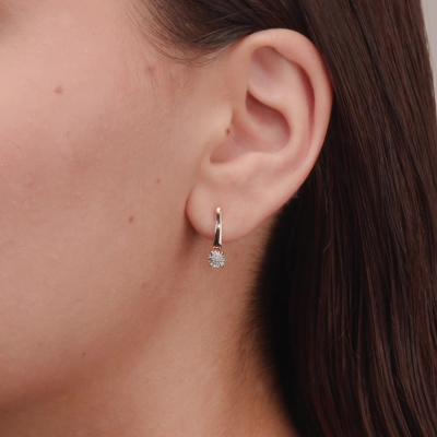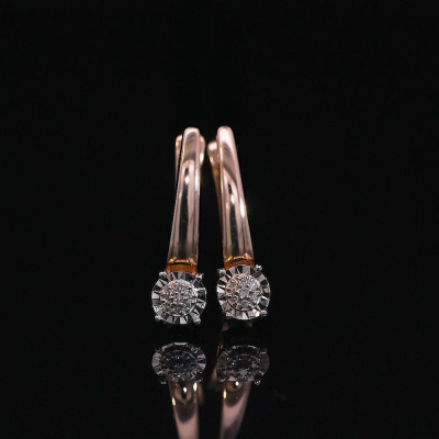 Серьги с 2 бриллиантами природными, 0.008 карат, огранка круг 17 граней, цвет 2, чистота 2, тип огранки А; 12 бриллиантами природными, 0.02 карат, огранка круг 17 граней, цвет 2, чистота 2, тип огранки А; Розовое и белое золото 585 пробы.