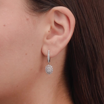 Серьги с 30 бриллиантами природными, 0.34 карат, огранка круг 57 граней, цвет 3, чистота 6, тип огранки А; 36 бриллиантами природными, 0.26 карат, огранка круг 57 граней, цвет 3, чистота 6, тип огранки А; 4 бриллиантами природными, 0.01 карат, огранка круг 17 граней, цвет 2, чистота 2, тип огранки А; 28 бриллиантами природными, 0.06 карат, огранка круг 17 граней, цвет 2, чистота 2, тип огранки А; Розовое и белое золото 585 пробы.