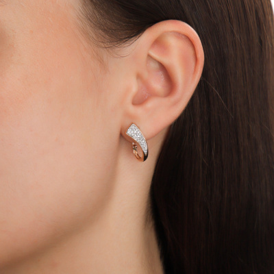 Серьги с 58 бриллиантами природными, 0.23 карат, огранка круг 17 граней, цвет 2, чистота 2, тип огранки А; Розовое золото 585 пробы.