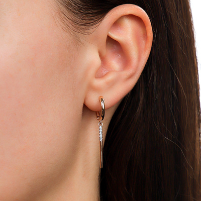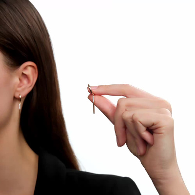 Серьги с 10 бриллиантами природными, 0.07 карат, огранка круг 57 граней, цвет 3, чистота 6, тип огранки А; Розовое золото 585 пробы.
