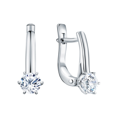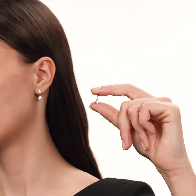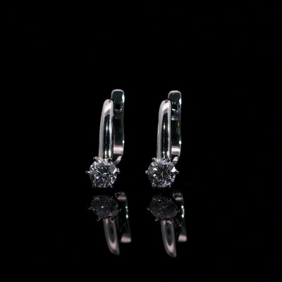 Серьги с 2 бриллиантами природными, 0.88 карат, огранка круг 57 граней, цвет 5, чистота 8, тип огранки А; Платина 950 пробы.