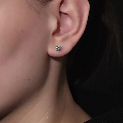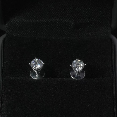 Серьги с 2 бриллиантами природными, 0.88 карат, огранка круг 57 граней, цвет 5, чистота 8, тип огранки А; Платина 950 пробы.