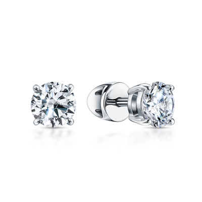 Серьги с 2 бриллиантами природными, 1.4 карат, огранка круг 57 граней, цвет 4, чистота 7, тип огранки А; Платина 950 пробы.