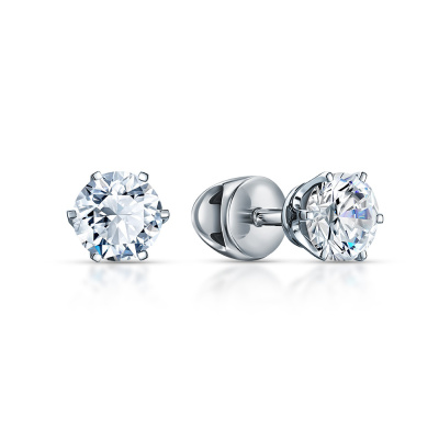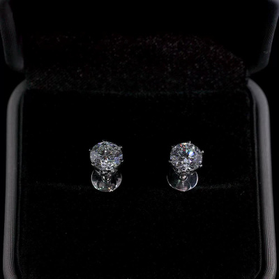 Серьги с 2 бриллиантами природными, 1.43 карат, огранка круг 57 граней, цвет 4, чистота 7, тип огранки А; Платина 950 пробы.