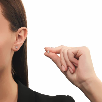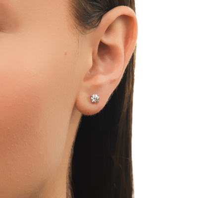 Серьги с 2 бриллиантами природными, 0.67 карат, огранка круг 57 граней, цвет 3, чистота 6, тип огранки А; Платина 950 пробы.