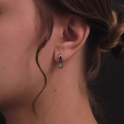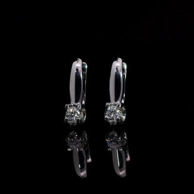 Серьги с 2 бриллиантами природными, 0.26 карат, огранка круг 57 граней, цвет 3, чистота 6, тип огранки А; Платина 950 пробы.