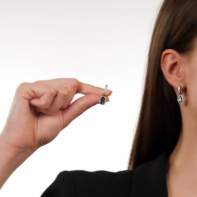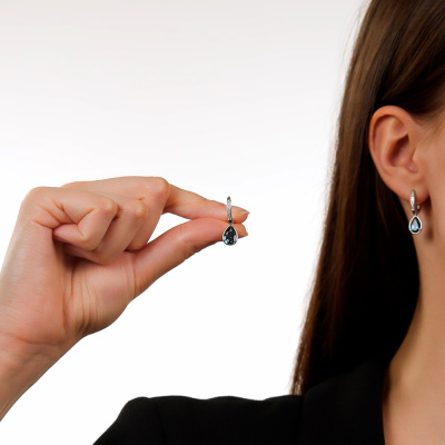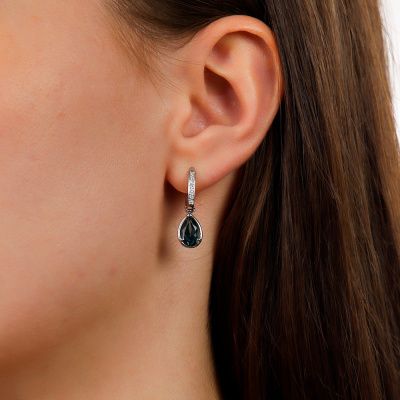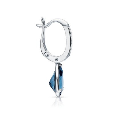 Серьги с 16 бриллиантами природными, 0.06 карат, огранка круг 17 граней, цвет 2, чистота 2, тип огранки А; 2 топазами лондон природными, 3.02 карат; Белое золото 585 пробы.