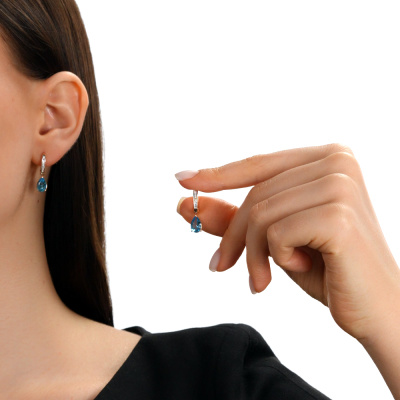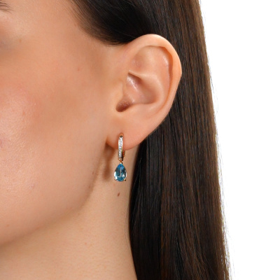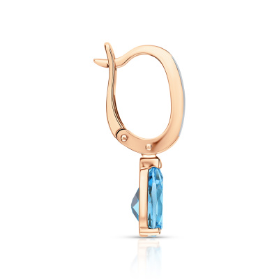 Серьги с 16 бриллиантами природными, 0.06 карат, огранка круг 17 граней, цвет 2, чистота 2, тип огранки А; 2 топазами свисс природными, 2.54 карат; Розовое золото 585 пробы.