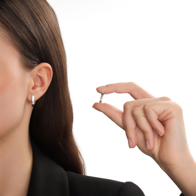 Серьги с 2 бриллиантами природными, 0.007 карат, огранка круг 17 граней, цвет 3, чистота 3, тип огранки Б; элементы из золота Au585; Серебро 925 пробы.