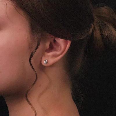 Серьги с 2 бриллиантами природными, 0.006 карат, огранка круг 17 граней, цвет 2, чистота 3, тип огранки Б; Серебро 925 пробы.