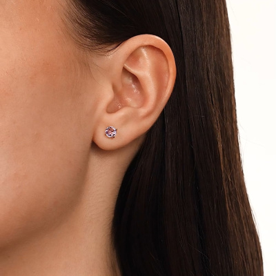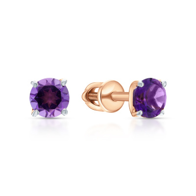 Серьги с 2 аметистами природными, 0.83 карат; Розовое золото 585 пробы.
