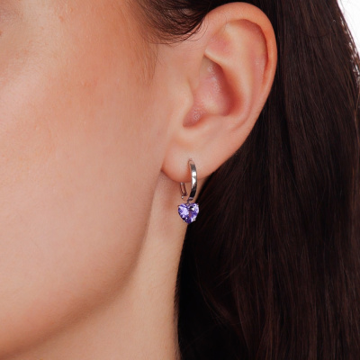 Серьги с 2 наноситалами танзанитами; Белое золото 585 пробы.