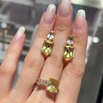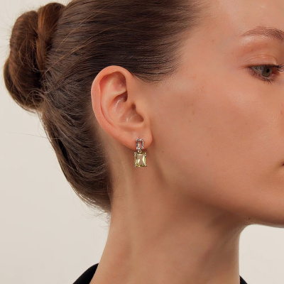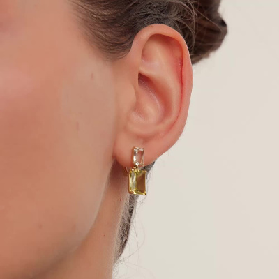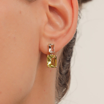 Серьги с 2 кварцами лимонными природными, 5.92 карат; 2 горными хрусталями природными, 1.65 карат; Желтое золото 585 пробы.