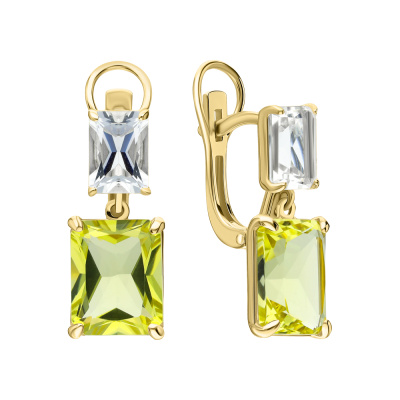 Золотые серьги с кварцами лимонными и бесцветными природными