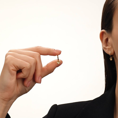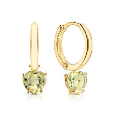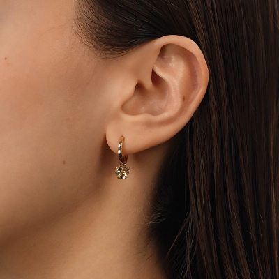 Серьги с 2 кварцами лимонными природными, 1.33 карат; Желтое золото 585 пробы.
