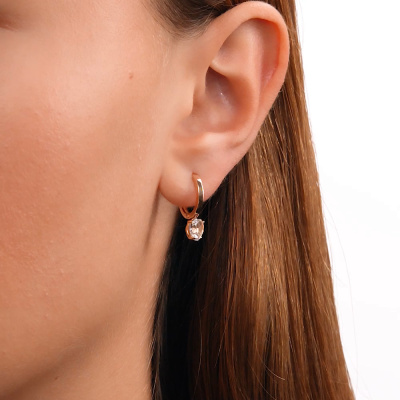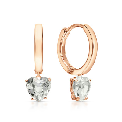 Серьги с 2 горными хрусталями природными, 1.44 карат; Розовое золото 585 пробы.