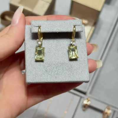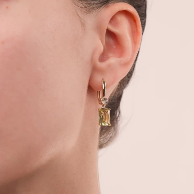 Золотые серьги с кварцами лимонными и бесцветными природными