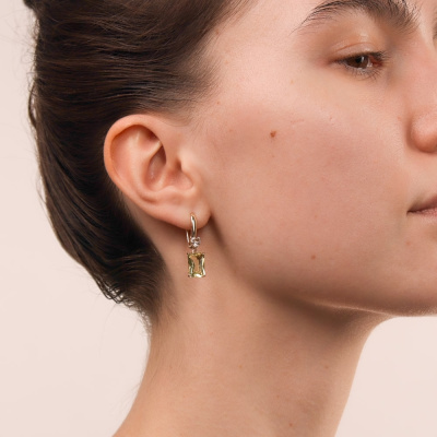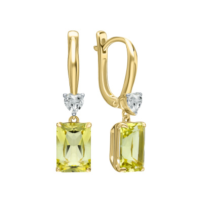 Серьги с 2 кварцами лимонными природными, 4.44 карат; 2 горными хрусталями природными, 0.43 карат; Желтое золото 585 пробы.