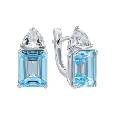 Серьги с 2 топазами скай природными, 7.44 карат; 2 горными хрусталями природными, 1.35 карат; Белое золото 585 пробы.