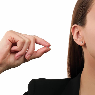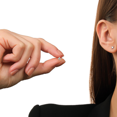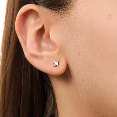 Серьги с 2 бриллиантами природными, 0.11 карат, огранка круг 57 граней, цвет 3, чистота 6, тип огранки А; 8 бриллиантами природными, 0.05 карат, огранка круг 17 граней, цвет 2, чистота 2, тип огранки А; Белое золото 585 пробы.