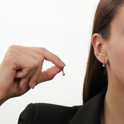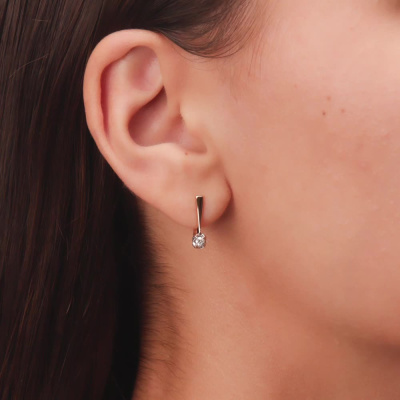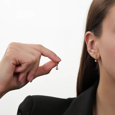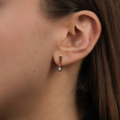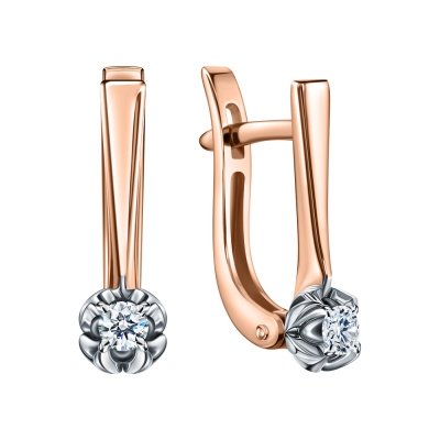 Серьги с 2 бриллиантами природными, 0.11 карат, огранка круг 57 граней, цвет 3, чистота 6, тип огранки А; Розовое золото 585 пробы.
