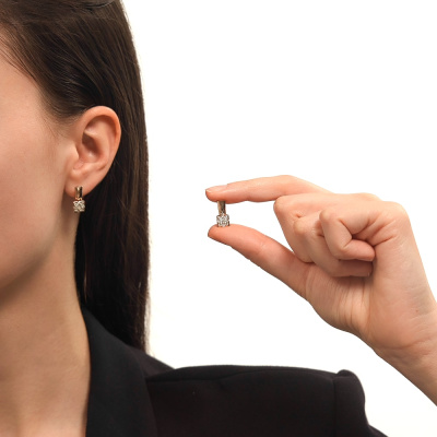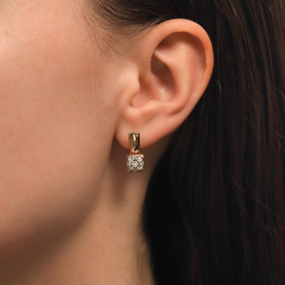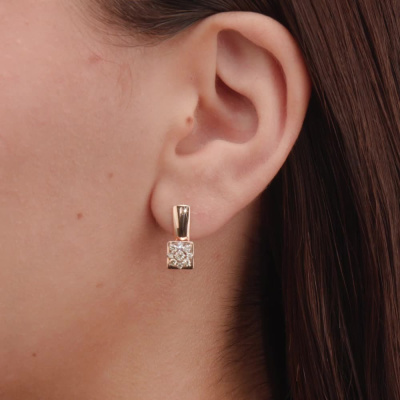 Серьги с 2 бриллиантами природными, 0.1 карат, огранка круг 57 граней, цвет 5, чистота 5, тип огранки А; 8 бриллиантами природными, 0.22 карат, огранка круг 57 граней, цвет 5, чистота 5, тип огранки А; 8 бриллиантами природными, 0.1 карат, огранка круг 57 граней, цвет 5, чистота 5, тип огранки А; Розовое золото 585 пробы.