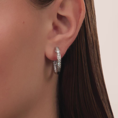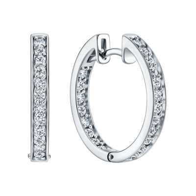 Серьги с 40 бриллиантами природными, 1.34 карат, огранка круг 57 граней, цвет 4, чистота 6, тип огранки А; Белое золото 585 пробы.