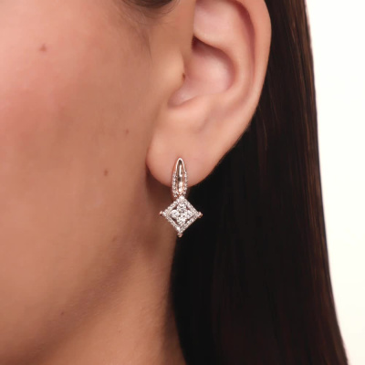 Серьги с 8 бриллиантами природными, 0.29 карат, огранка круг 57 граней, цвет 4, чистота 7, тип огранки А; 72 бриллиантами природными, 0.29 карат, огранка круг 17 граней, цвет 2, чистота 2, тип огранки А; Розовое и белое золото 585 пробы.