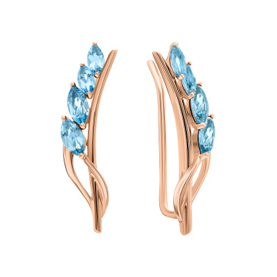 Серьги с 4 топазами свисс природными, 0.66 карат; 4 топазами свисс природными, 0.36 карат; Розовое золото 585 пробы.