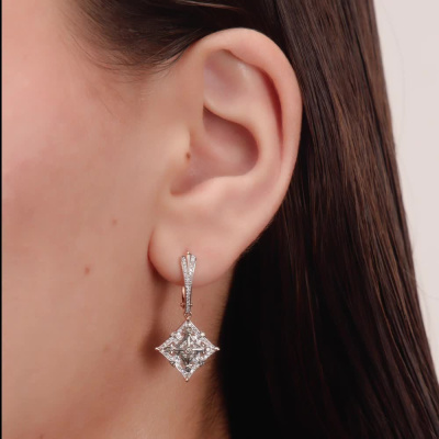 Серьги с 122 бриллиантами природными, 0.22 карат, огранка круг 17 граней, цвет 2, чистота 2, тип огранки А; 18 бриллиантами коньячными природными, 0.06 карат, огранка круг 57 граней, цвет 7, чистота 5, тип огранки А; 16 бриллиантами коньячными природными, 0.04 карат, огранка круг 57 граней, цвет 7, чистота 5, тип огранки А; Розовое и белое золото 585 пробы.