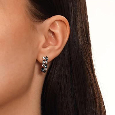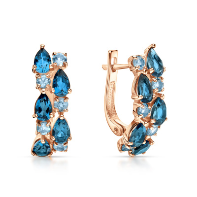 Серьги с 10 топазами лондон природными, 2 карат; 10 топазами свисс природными, 0.83 карат; Розовое золото 585 пробы.