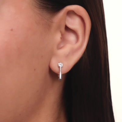 Серьги с 2 бриллиантами природными, 0.05 карат, огранка круг 57 граней, цвет 3, чистота 6, тип огранки А; 12 бриллиантами природными, 0.13 карат, огранка круг 57 граней, цвет 3, чистота 6, тип огранки А; 2 бриллиантами природными, 0.01 карат, огранка круг 57 граней, цвет 3, чистота 6, тип огранки А; Белое золото 585 пробы.