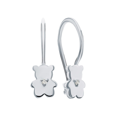 Серьги с 2 бриллиантами природными, 0.007 карат, огранка круг 17 граней, цвет 2, чистота 2, тип огранки А; Белое золото 585 пробы.