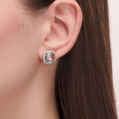 Серьги с 64 бриллиантами природными, 0.22 карат, огранка круг 17 граней, цвет 2, чистота 2, тип огранки Б; 2 топазами, 9.15 карат; Белое золото 585 пробы.