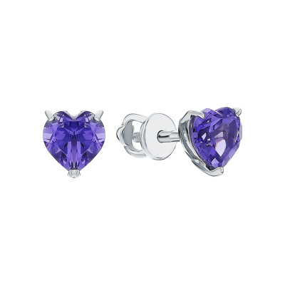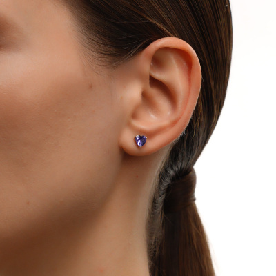 Золотые серьги с наноситаллами танзанит