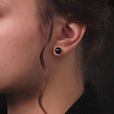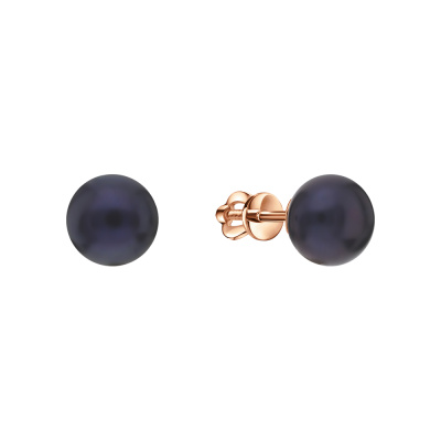 Серьги с 2 жемчугами пресноводными культ.черными, 5.15 карат; Розовое золото 585 пробы.