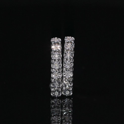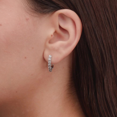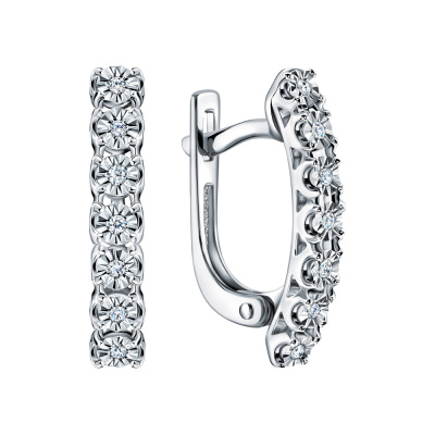 Серьги с 14 бриллиантами природными, 0.05 карат, огранка круг 17 граней, цвет 4, чистота 5, тип огранки Б; Белое золото 585 пробы.