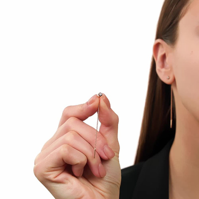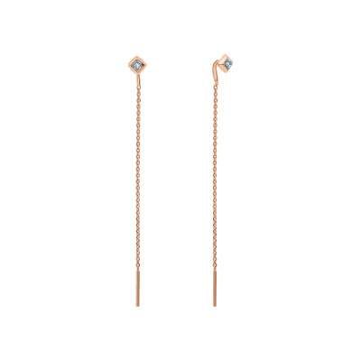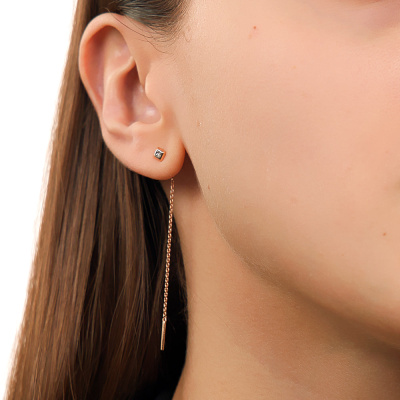 Серьги с 2 бриллиантами природными, 0.01 карат, огранка круг 57 граней, цвет 4, чистота 5, тип огранки А; Розовое золото 585 пробы.