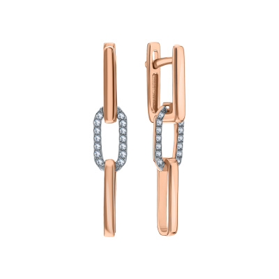 Серьги с 28 бриллиантами природными, 0.1 карат, огранка круг 17 граней, цвет 2, чистота 2, тип огранки Б; Розовое золото 585 пробы.