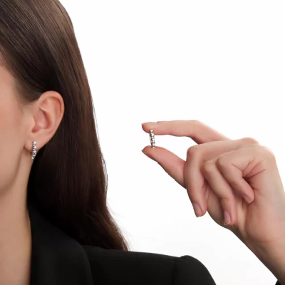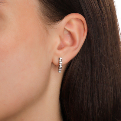 Серьги с 10 бриллиантами природными, 0.37 карат, огранка круг 57 граней, цвет 3, чистота 6, тип огранки А; Желтое золото 585 пробы.