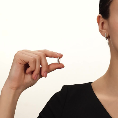 Серьги с 10 бриллиантами природными, 0.37 карат, огранка круг 57 граней, цвет 3, чистота 6, тип огранки А; Розовое золото 585 пробы.