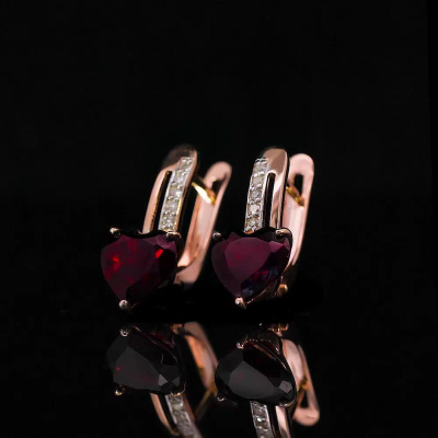 Серьги с 10 бриллиантами природными, 0.04 карат, огранка круг 17 граней, цвет 2, чистота 2, тип огранки А; 2 гранатами природными, 2.85 карат, тип огранки Б; Розовое золото 585 пробы.