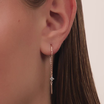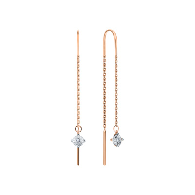 Серьги с 2 бриллиантами природными, 0.008 карат, огранка круг 17 граней, цвет 2, чистота 2, тип огранки А; Розовое и белое золото 585 пробы.