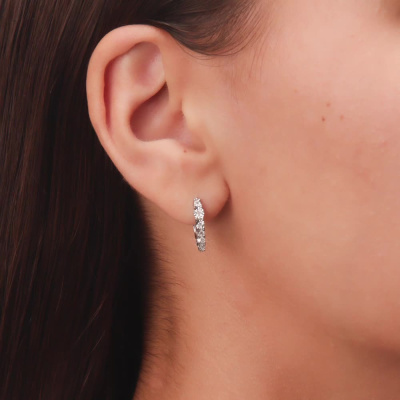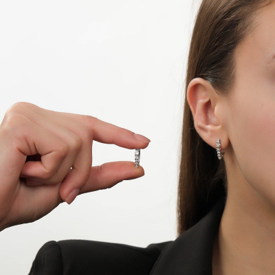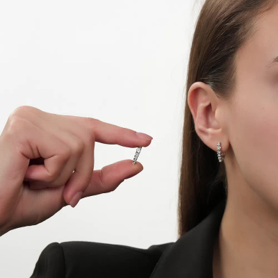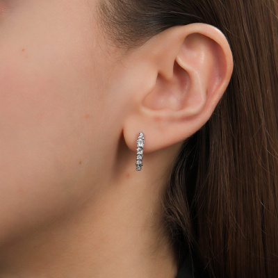 Серьги с 12 бриллиантами природными, 0.05 карат, огранка круг 17 граней, цвет 2, чистота 2, тип огранки А; Белое золото 585 пробы.