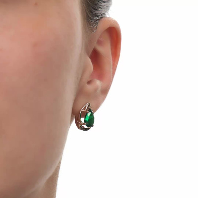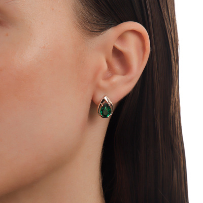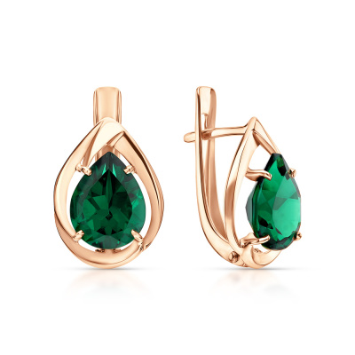 Серьги, вставка: наноситал изумруд; Розовое золото 585 пробы.