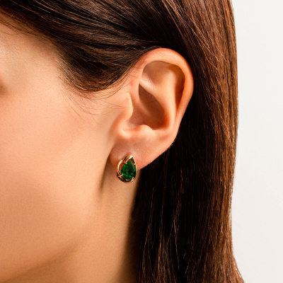 Золотые серьги с наноситаллами изумруд