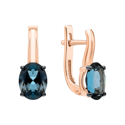 Серьги с 2 топазами лондон природными, 2.79 карат; Розовое золото 585 пробы.