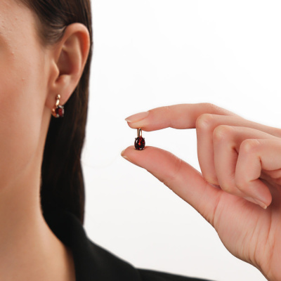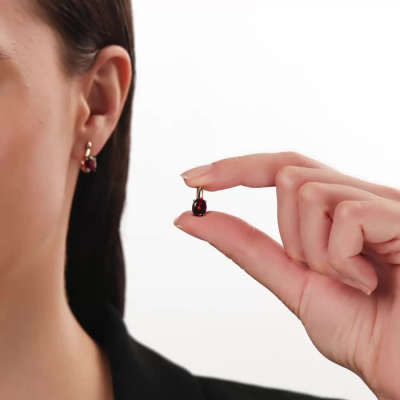 Золотые серьги с гранатами природными