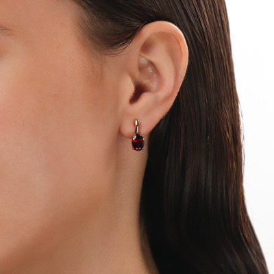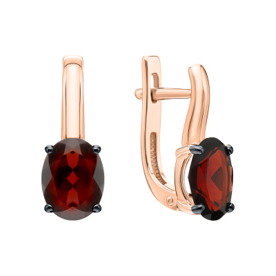 Серьги с 2 гранатами природными, 2.76 карат; Розовое золото 585 пробы.