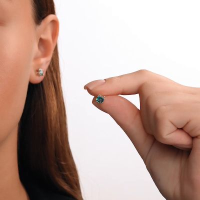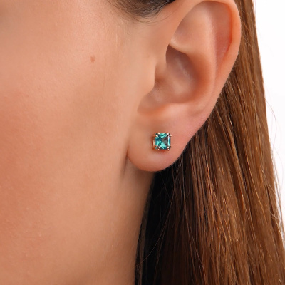 Серьги с 2 наноситалами турмалинами параиба, 1.06 карат; Розовое золото 585 пробы.